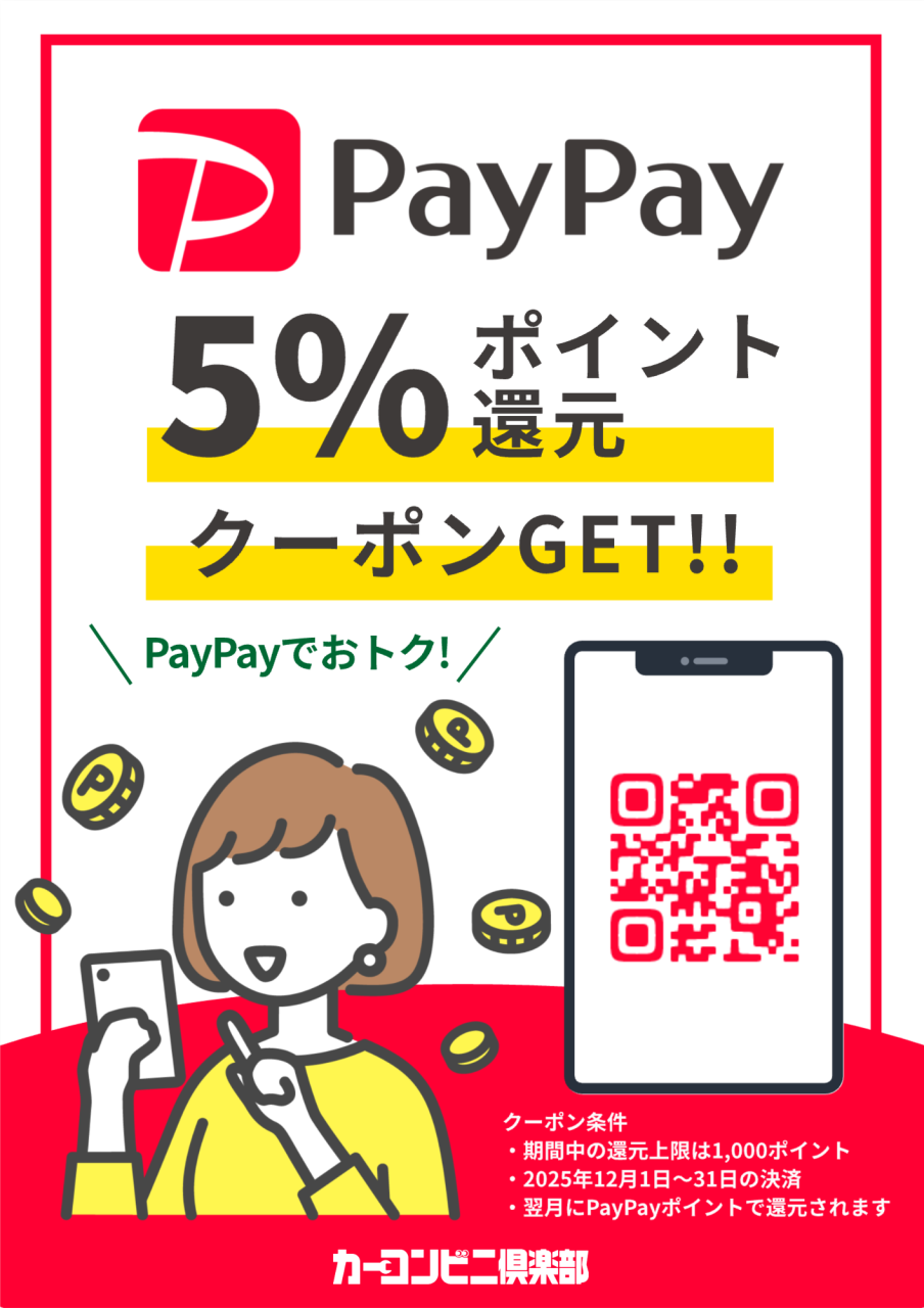 カーコンビニ倶楽部クーポンが 12月1日から1ヶ月間スタートします!
